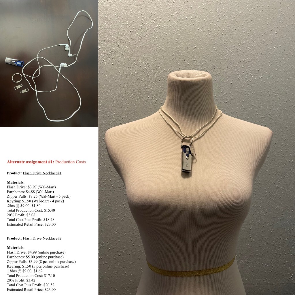This was the unconventional challenge from a previous assignment (Your Idea). Using items around the home to create an accessory. My materials were a flash drive, key ring, zipper pulls (2) and earphones. In this assignment I learned how to use household items to create a quick accessory, and how to use price points to calculate the finished product for distribution. #parsonsxteenvogue